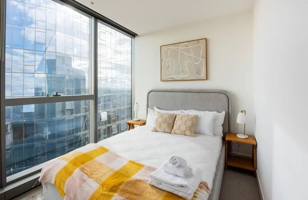 Algunas unidades también tienen una cocina completa, equipada con un lavavajillas y un horno. El apartamento Sky High Serenity Level 66, Docklands, Melbourne está justo al lado de la parada de autobuses Dudley Street/Spencer Street.